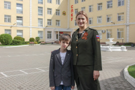Ася Тохчукова – медицинская сестра полевого госпиталя, участница СВО, привезла своего сына Тамира из Карачаево-Черкесии: «У меня три дочки и один сын. Муж тоже участник СВО, он служил в полиции, но, когда началась специальная военная операция, пошёл служить добровольцем. По состоянию здоровья был комиссован. Единственного сына решили отправить учиться в Ставропольское президентское кадетское училище прежде всего потому, что он сам так захотел. Он с пяти лет мечтает стать военным лётчиком. Да и вообще настоящий мужчина должен быть защитником. Если наши сыновья не станут за нашу Родину, то кто?! А сыновья не должны быть маменькиными сынками, че раньше они приучатся к самостоятельности, тем лучше, а здесь научат и крепкой дружбе и умению принимать решения и брать на себя ответственность.