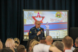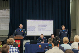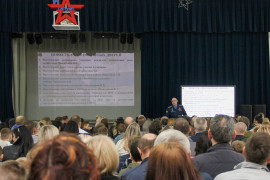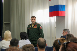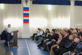 Во время встречи руководство Ставропольского президентского кадетского училища рассказало присутствующим о правилах приёма и жизни воспитанников. Открыл встречу начальник Ставропольского ПКУ, кандидат технических наук, профессор Вячеслав Валерьевич Преснухин: