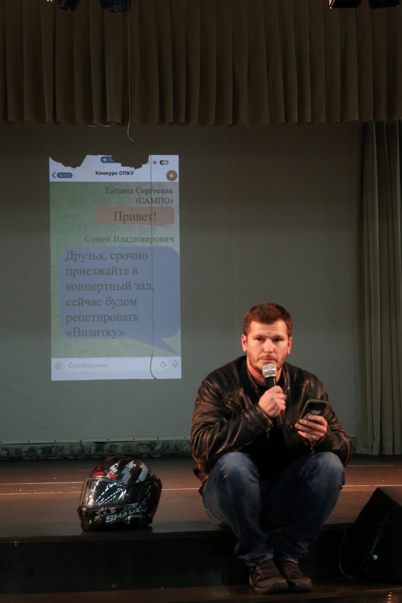 Открыли первый этап фестиваля-конкурса участники команды «Покатак». Во время своего выступления они сравнили игру всех инструментов в оркестре со взаимодействием всех участников образовательного процесса в СПКУ. И если все играют в унисон, а не каждый для себя, то всё идет «как по нотам».