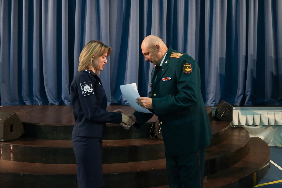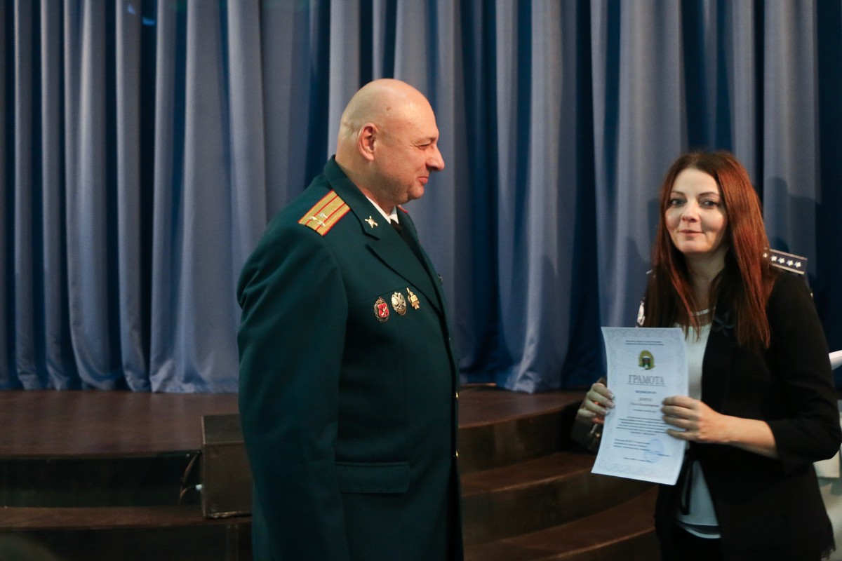 Парад наград продолжил заместитель начальника училища по учебной Сергей Владимирович Степанов. Он зачитал праздничный приказ начальника Ставропольского ПКУ о награждении почётными грамотами и благодарственными письмами сотрудников училища.