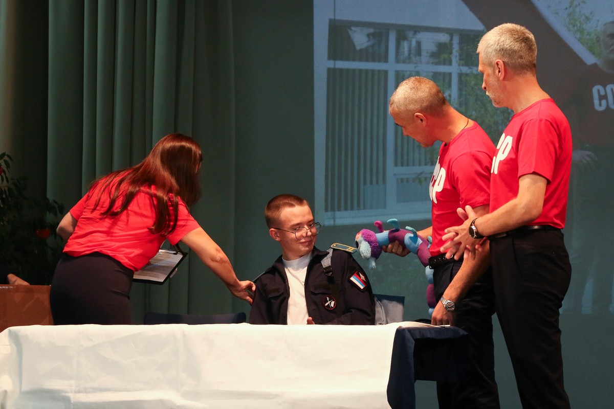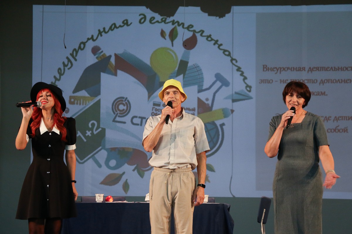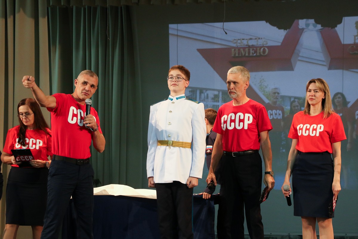 Команда «СССР» выступала первой в конкурсной программе. «СССР» – это Содружество Сильных Сообразительных Реформаторов. «Внеурочная деятельность для нас – не просто работа…А вдохновляющее путешествие в мир будущего! Мы не просто проводим занятия – мы создаём возможности! Мы не просто обучаем – мы вдохновляем», - такую идею транслировали со сцены участники команды, после шуточной попытки создать идеального кадета будущего.