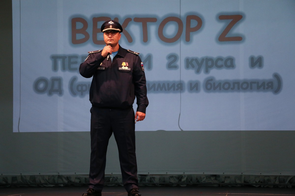 Затем свою визитную карточку представила команда «Вектор Z». Они попытались заглянуть в будущее. «Объединяя наследие и инновации, мы не просто учим - мы вдохновляем на подвиг каждодневного преодоления. Наша сила в гармонии традиций и смелого взгляда в будущее», - заявила команда.