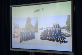 Следующими с отчётом о летней практике выступили ребята, побывавшие в Военной академии ракетных войск стратегического назначения им. Петра Великого (г. Балашиха). Кадеты также узнали всё об условиях поступления и учёбы в этом вузе. Знакомиться с академией РВСН десятиклассникам помогал выпускник СПКУ 2019 года Никита Усенко, который сейчас учится на 4 курсе академии. Также у кадет в этом вузе прошли учения под названием: «Основы боевой подготовки: тактика, инженерия, топография». Кадеты СПКУ сделали для себя ещё одно открытие: в военных вузах можно и нужно заниматься наукой, для этого есть все необходимые условия.
