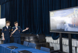 Первыми с презентацией своей практики выступили кадеты, побывавшие в Военно-космической академии имени А.Ф. Можайского (г. Санкт-Петербург). Ребята рассказали о том, какие профессии можно получить в этом вузе и как туда поступить. Для того, чтобы стать курсантом Академии ВКС необходимо сдать ЕГЭ по русскому языку, математике и физике. Кадеты побывали на всех факультетах вуза: строительном, радиоэлектронной борьбы, автоматизированных систем управления, противоракетной обороны и других. Увидели условия, как живут и учатся курсанты академии, встретились с выпускниками СПКУ, которые теперь учатся в «Можайке». Кроме учебной практики у десятиклассников СПКУ в Санкт-Петербурге была и насыщенная культурная программа по музеям и достопримечательным местам Северной столицы.