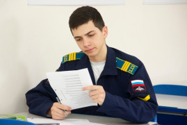 В Ставропольском президентском кадетском училище состоялся репетиционный ОГЭ по русскому языку. Свои знания по этому предмету проверяли все воспитанники учебного курса 9-х классов. Репетиция экзамена прошла в обстановке максимально приближенной к реальной. Заполнение экзаменационных бланков, задания и отведённое для их решения время – всё как на настоящем экзамене. Кадеты СПКУ с репетиционным ОГЭ по русскому языку справились успешно.