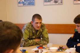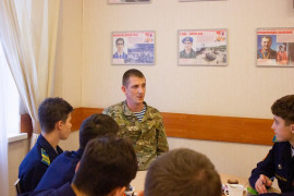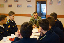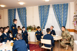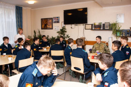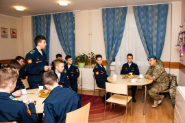Воспитанники учебного курса 9-х классов Ставропольского президентского кадетского училища встретились с участниками специальной военной операции на Украине. В неформальной обстановке, за кружкой чая солдаты рассказали кадетам о себе и о событиях, которые сейчас происходят на фронте.