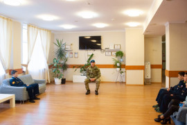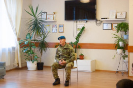 Педагог-организатор учебного курса Оксана Сергеевна Романова в завершении встречи поблагодарила солдат: «Мы с вами являемся частью могучего, сильного, многонационального народа России и гордимся этим. Низкий вам поклон за усилия, с помощью которых именно вы создаёте мирное небо над нашими головами. Сегодня была большая честь находиться здесь рядом с вами».