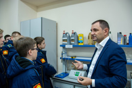 «Сегодня 7А класс идёт на экскурсию в Ставропольский государственный аграрный университет. На входе нас встречает кандидат технических наук, доцент кафедры электротехники, физики о охраны труда Михаил Анатольевич Афанасьев. Он провождает нас в Центр молодёжного инновационного творчества. Центр состоит из нескольких лабораторий и по этим лабораториям нам проводит экскурсию доцент Николай Александрович Марьин. В первой аудитории показывают в разрезе двигатели внутреннего сгорания Минского тракторного завода, которые являются аналогами танковых двигателей. В следующей показывают двигатель, а также трансмиссию трактора в наглядном виде и как они взаимодействуют друг с другом. В секторе сварки рассказывают, что здесь обучают студентов навыками сварки. Дальше нас ведут в учебно-научную лабораторию «Топливо-смазочные материалы и системы питания автотракторных двигателей», где мы встречаем студента, которого зовут Денис Алексеевич. Он рассказал, что здесь проводится анализ бензина и масла трактора и как отличают некачественный бензин от качественного. Один кадет спросил экскурсовода: