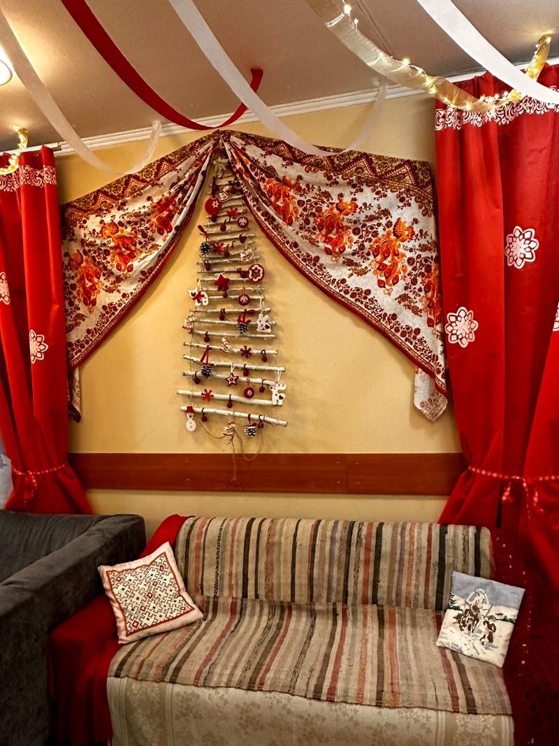 Важно отметить, что в этом проекте - главной ценностью стала кропотливая ручная работа. Ребята и родители вместе мастерили игрушки из фетра, вручную расписывали орнаменты на занавесях и скатертях, создавали сложные украшения из природных материалов. Это не просто декор, а результат общего труда, творчества и душевного тепла, которые теперь согревают всех, кто заходит в чайную комнату.