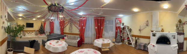 Особого внимания заслуживает потолочное украшение, выполненное в ярмарочном, праздничном стиле. Оно символично объединяет все зоны воедино, напоминая, что прошлое и настоящее неразрывно связаны, а Новый год - это праздник, который собирает вместе поколения.