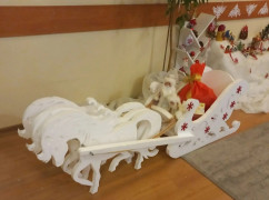 Самая трогательная часть экспозиции - дань уважения тем, кто оберегает наш покой. Сани Деда Мороза, запряжённые лихой тройкой, везут не просто игрушечный, а самый настоящий мешок с подарками, которые будут отправлены нашим защитникам. Эта инсталляция, как и все остальные поделки в комнате, сделана руками кадет - это их личный вклад и послание поддержки.