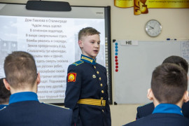 Урок под названием «Двести огненных дней» начался с проблемного вопроса. Чтобы доказать свою правоту и обоснованность суждений, кадетам понадобилось по ходу урока обращаться к толковым словарям, вспоминать изученный ранее теоретический материал, собирать и сопоставлять данные. Также воспитанники на протяжении урока знакомились с документами, посвящёнными битве, учились анализировать цитатный материал, создавать художественные плакаты. Активная работа, умение грамотно распределять время и делегировать задачи помогли ребятам справиться с заданием быстро и качественно.
