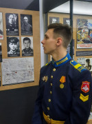 На выставке кадеты смогли увидеть личные вещи Матрёны Ноздрачевой, которая всю войну прошла медицинской сестрой и стала полным кавалером ордена Славы. Она в числе первых форсировала Днепр, оказав помощь более сотни раненым.