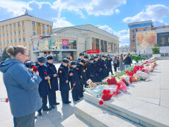 Завершая экскурсию по центру Ставрополя, кадеты почтили память погибших в теракте в «Крокус Сити Холле», возложив цветы у подножия «Ангела» на Александровской площади.