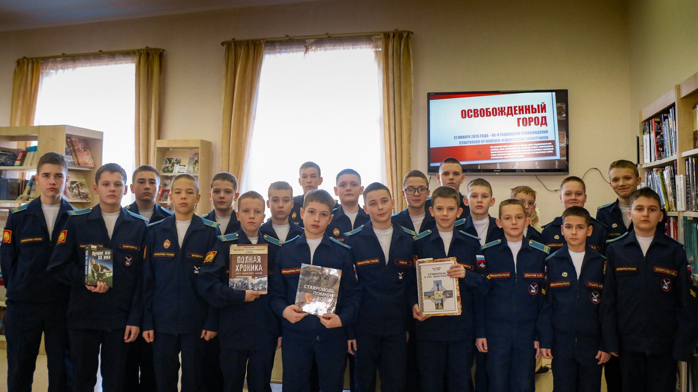 20-21 января 2026 года библиотекари предложили воспитанникам 2 курса 6 «В» и 6 «Д» классов совершить историко-литературный экскурс в прошлое. Истории в солдатских конвертах стали отправными точками разделов выставки. Кадеты узнали о том, почему Ставрополь назывался Ворошиловском и когда его переименовали; об операции «Эдельвейс» и почему город стал «ключом, который оставалось только вставить в замочную скважину двери, открывавшей дорогу на Кавказ». Воспитанники узнали о жизни горожан в период оккупации, о формировании групп сопротивления, в которые входили такие же подростки, как они.