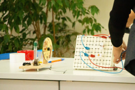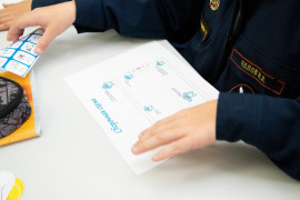 В начале занятия педагог рассказала воспитанникам о том, какими способами вырабатывается электричество, что такое электрическая цепь, что входит в её состав и какие бывают виды цепи. А затем все вместе приступили к практической части занятия. На бумаге с помощью самоклеящейся фольги, «таблетки» (так называют круглые плоские батарейки) и светодиода ребята смогли построить свою электрическую цепь. Получилось у всех. Лампочка каждого кадета зажглась синим, жёлтым, зелёным или красным светом.