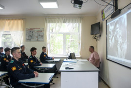 В преддверии праздника Великой Победы воспитатель 11 «А» класса Ставропольского ПКУ Светлана Дмитриевна Язвинская провела мастер-класс, на котором продемонстрировала технологию показа и обсуждения на примере просмотра документального фильма «ЭТИ» Антона Гришина и Александра Андреева в целях раскрытия воспитательного потенциала документального кино.