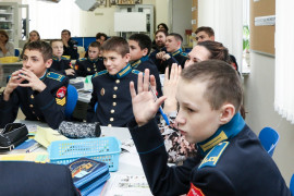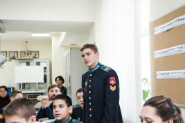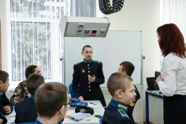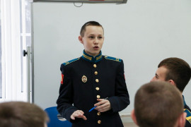 У воспитанников 7 «Д» класса Ставропольского ПКУ вместе с родителями прошел урок физики «Физика для жизни. Трение». Кадеты и родители, разбившись на команды, разбирались в жизненных ситуациях. Например, если нужно быстро остановить автомобиль, следует ли резко нажимать на педаль тормоза и заклинивать колеса? Почему на рыбалке не получится ухватить рыбу руками? В какой обуви необходимо ходить зимой?
