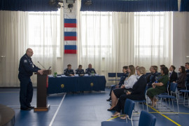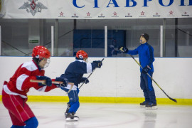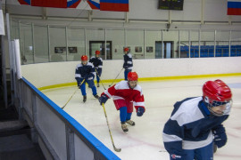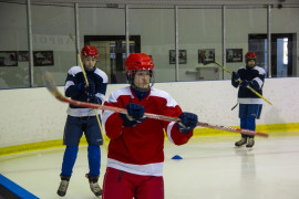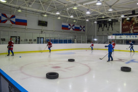 Особое место в череде мероприятий занимал мастер-класс в Ледовом дворце СПКУ для всех участников – занятие по хоккейной подготовке «Совершенствование передвижений, поворотов, торможений, приёмов владения шайбой и бросков по воротам». Его провели преподаватели физической культуры старший лейтенант Дмитрий Иванович Левенцов, лейтенант Алексей Алексеевич Крыжановский и заведующий ледовым катком Евгений Владимирович Туз. Умение держаться на коньках, ловкость, силу, быстроту реакции – всё это продемонстрировали во время мастер-класса их воспитанники, которые в очередной раз подтвердили правоту фразы из песни «В хоккей играют настоящие мужчины!».