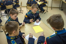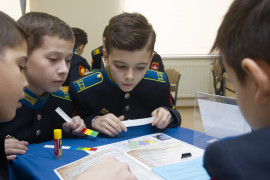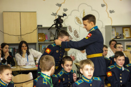 В секции «Педагогический форсайт» или взгляд в будущее довузовского образования Министерства обороны России» открытый урок «Роль обращений в повести М.А. Булгакова «Собачье сердце» у десятиклассников провела преподаватель русского языка и литературы Дарья Владиславовна Кузнецова. Вывод урока получился совершенно удивительным и неожиданным. Кадеты поняли, что «нет уз святее товарищества». И это очень ценное понимание.