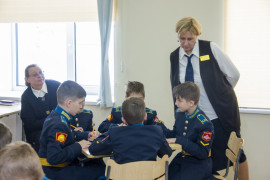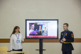 Мастер-класс «Цифровизация образования, или как педагогу соответствовать требованиям современной школы» показала преподаватель английского языка Евгения Анатольевна Нилова, а мастер-класс «Бинарный классный час как форма активизации личностной и гражданской позиции воспитанников (на примере проблемной лекции-беседы «Информационная безопасность – это ты!»)» провела методист по социальной работе СПКУ Елена Николаевна Букреева вместе с соведущим – кадетом 9 класса Иваном Слюсаревым.