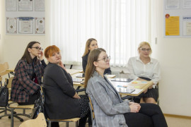 Здесь участники Форума посмотрели интеллектуальную математическую игру «Зимние, жаркие, математические», которую провели преподаватели математики Наталья Александровна Иванова и Ирина Васильевна Голованова. Узнали, как работает «Конструктор педтехнологий формирования инженерно-технического мышления» на мастер-классе преподавателя математики Юлии Сергеевны Радченко.