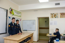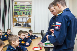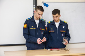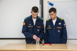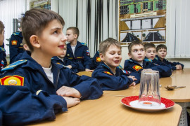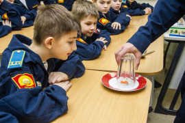 Рассказать пятиклассникам о физике, как об одной из наиболее древних научных дисциплин и продемонстрировать уникальные свойства физических объектов вызвались кадеты Никита Дорошенко и Севастьян Принцев, продемонстрировавшие опыты с центром масс тела и горением свечи.