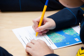 Так с Андреевского флага началась новая тема геометрии у семиклассников. Ребята повторили уже пройденный материал и вспомнили, что в первой четверти они изучили такие понятия, как точка, прямая, взаимное положение прямых, отрезок, луч, и, наконец, угол. Ответили на вопросы «какие геометрические фигуры являются простейшими», «что такое угол», «в чём он измеряется» и пришли к выводу, что угол – это самая сложная фигура из самых простых. Затем кадеты изучили термины: «широта», «долгота», «азимут», «климат», и вспомнили, что эти слова им уже знакомы из курса географии. Ширина, долгота, азимут – это углы, с помощью которых указывается положение объекта. Климат – это наклон солнечных лучей к горизонтальной поверхности. И очень важным практическим умением является расчёт углов, чем и занялись воспитанники в практической части урока.