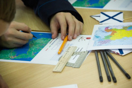 Как ни странно, урок геометрии начался с истории становления российского флота. «Попросил своего учителя геометрии Франца Тиммермана найти мастера, который смог починить ботик», – процитировала преподаватель фрагмент записки «О начале судостроения» Петра Великого. – Тиммерман представил Петру плотника Карштена Бранда и именно он стал первым наставником Петра в морском деле. Эти слова без особого труда позволяют нам понять, что речь идёт о Петре Великом. И с ремонта английского ботика началась великая история Императорского флота. Символом военно-морского флота становится Андреевский флаг, который уже в XVIII веке был покрыт славой морских сражений, в которых под ним участвовали корабли русского флота. Он превратился в главную святыню русского военного моряка, его гордость.