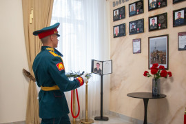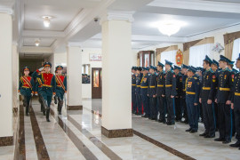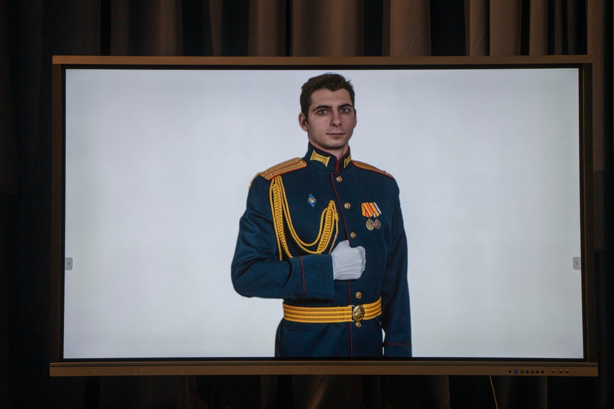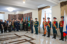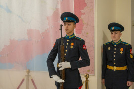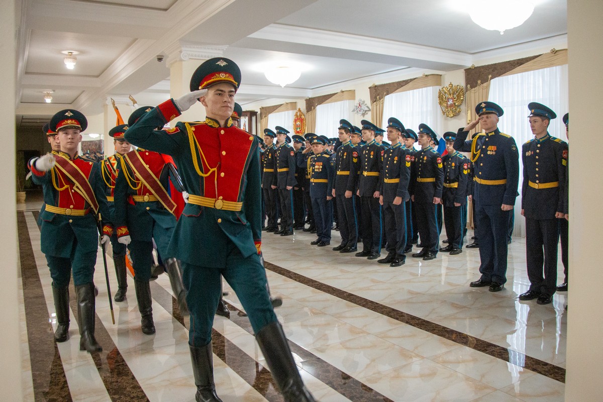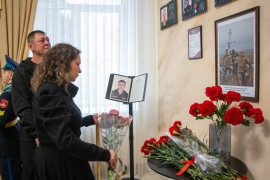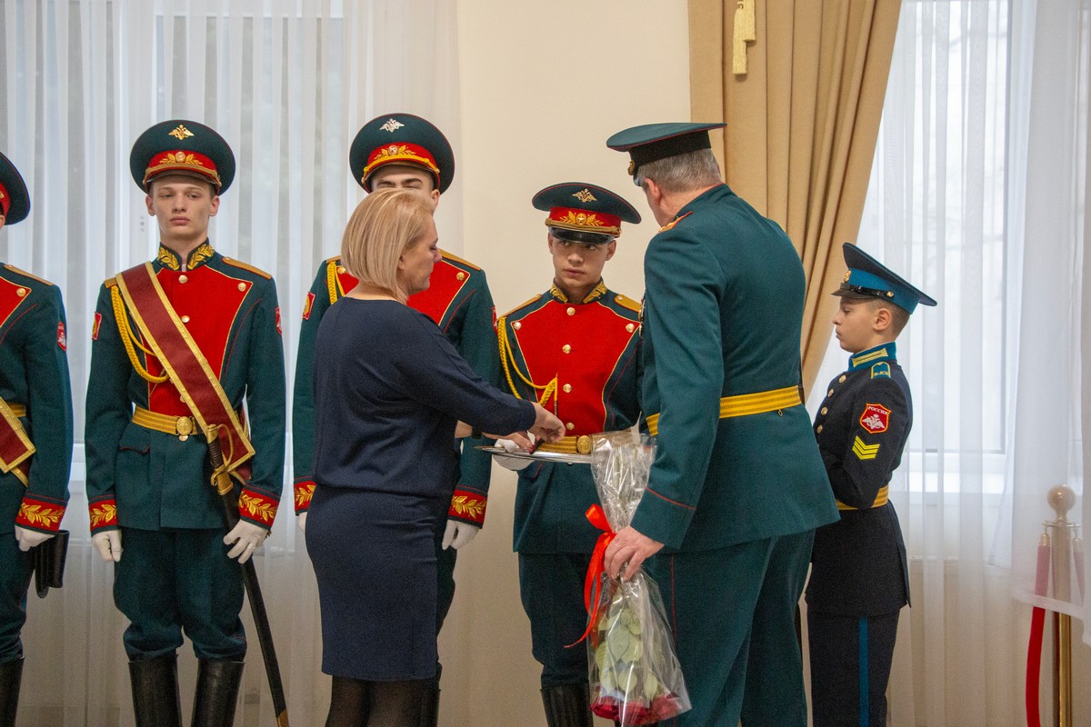 После минуты молчания, которой почтили память погибших героев, право открыть Стену Памяти было предоставлено кадету 6 учебного курса СПКУ Хасану Калицеву и матери погибшего в зоне проведения СВО выпускника училища.