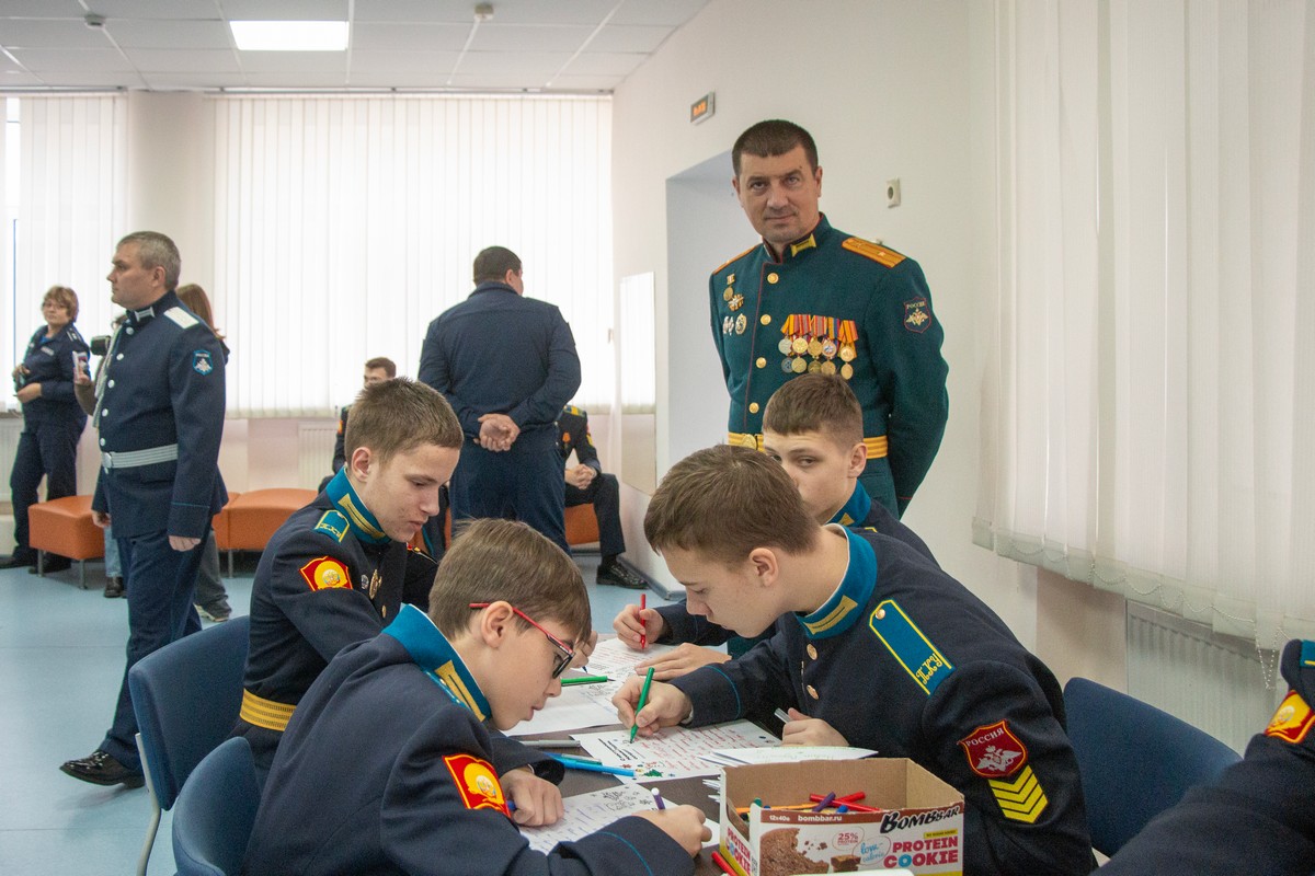 До начала мероприятия, гостям училища организовали экскурсию по Музею СПКУ, где показали и рассказали об истории училища, особое место среди экспозиций музея занимает тема специальной военной операции. В холле 1 этажа можно было ознакомиться и с тем, как оказывают помощь бойцам СВО кадеты СПКУ. Ребята показывали мастер-класс по сбору сухого пайка, изготовлению окопных свечей и пошива стелек, плетению маскировочных сетей.
