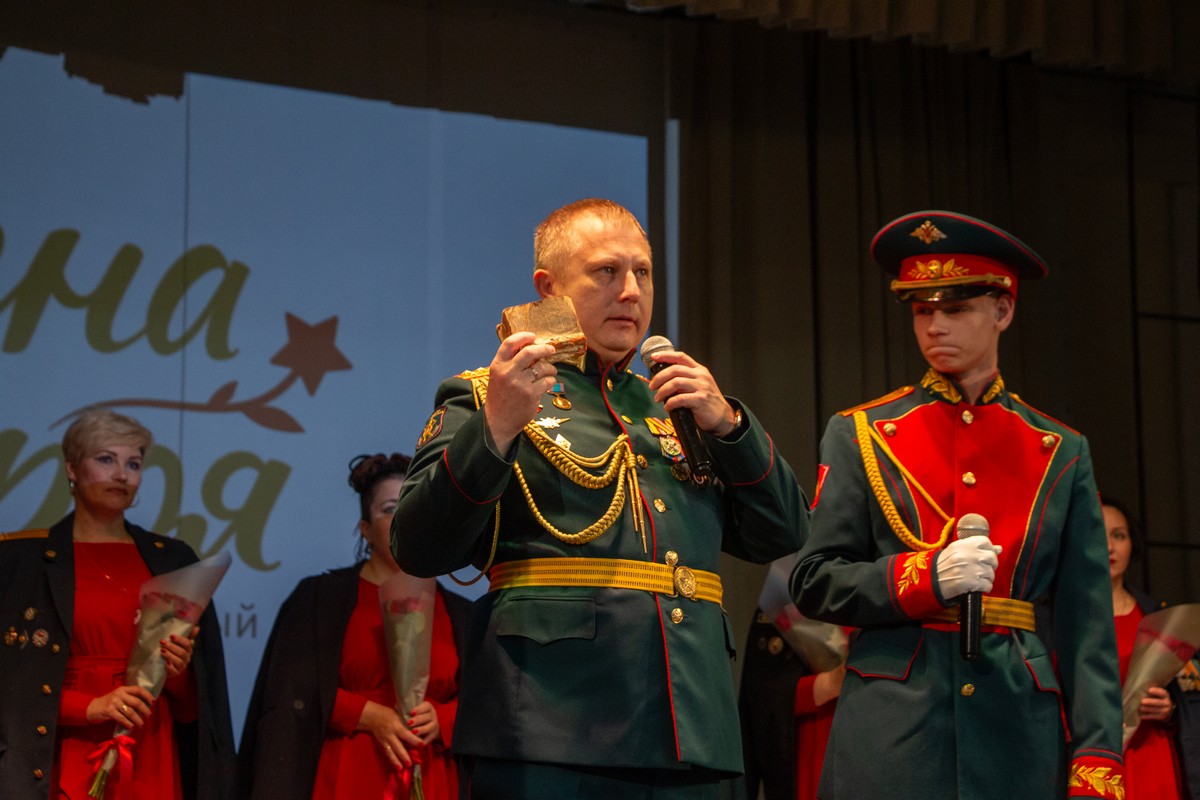 Завершилось мероприятия концертной программой, которую подготовили в честь мероприятия участницы ставропольского проекта «Жёны героев». Патриотические песни о Родине, о любви, о семье исполнил ансамбль «Жёны героев». В коллективе хора 17 человек. Все участницы — жены действующих участников спецоперации. Среди женщин не профессиональных певиц, однако, Ставропольский проект «Жены героев» стал одним из победителей XXXII Международного фестиваля-конкурса патриотической песни «Солдатский конверт». Он завоевал Гран-при в специальной номинации с произведением «Две матери».