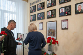 Накануне Дня Героев Отечества в Ставропольском президентском кадетском училище была открыта Стена Памяти в честь выпускников и сотрудников, погибших при исполнении воинского долга в ходе специальной военной операции. «Бессмертный полк СПКУ», - так назвали мемориал, открытый в главном холе училища. Портреты восьми выпускников и двух сотрудников теперь навсегда останутся на одной из стен центрального холла СПКУ. Торжественная церемония открытия мемориала собрала кадет и педагогов училища, ветеранов Вооружённых Сил России. Среди почётных гостей – родители и родственники погибших героев.