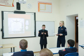 У воспитанников 5 «Е» класса Ставропольского президентского кадетского училища состоялось открытое внеурочное мероприятие на тему «Герои прошлого и настоящего времени». Провела «классный час» воспитатель-классный руководитель 5 «Е» Елена Петровна Решетникова.