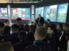 Ребята на выставке узнали о причинах спецоперации, о тяжёлых условиях её проведения, о героях освобождения от нацизма земли Донбасса, как в годы Великой Отечественной войны, так и в нынешние дни. Воспитатели рассказали кадетам о героизме российских солдат и офицеров, о подвигах Гаджимагомедова Н.Э., Жоги В.А., героического экипажа танка Т72: Гилемханов Д.Р., Исламов Д.Н., Цевун И.Г. и многих других. Об обороне Саур-могилы, о взятии Мариуполя и о продолжающихся тяжёлых боях на фронтах спецоперации.