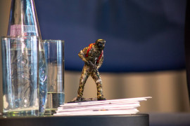 В завершение встречи гостю СПКУ были переданы письма кадет для наших защитников, а самое главное, начальник 3 учебного курса Чивильдеев Алексей Петрович передал в дар Герою России Владиславу Головину статуэтку морского пехотинца с красным рюкзаком, которую сделал его сын - лейтенант Чивильдеев.
