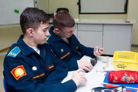 11 класс – это не только последний год обучения для кадет в Ставропольском президентском кадетском училище, но интенсивный год подготовки к Единому государственному экзамену. Как происходит подготовка к ЕГЭ по физике в профильных физико-математических классах продемонстрировали воспитанники 11 «В» класса на открытом индивидуально-групповом занятии вместе с преподавателем физики Еленой Константиновной Левинской.