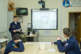 Кадеты 3 курса получили возможность, выполняя задания квеста, познакомиться с эпохами развития наук, с наиболее яркими представителями научного круга и открытиями различных периодов.