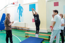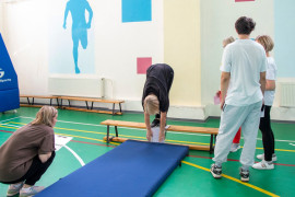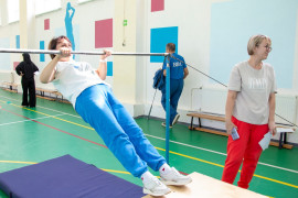 - упражнение на гибкость (наклон вперёд из положения стоя на гимнастической скамье);