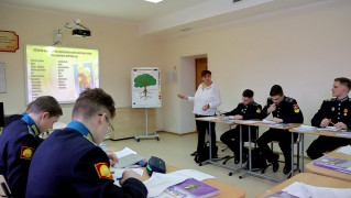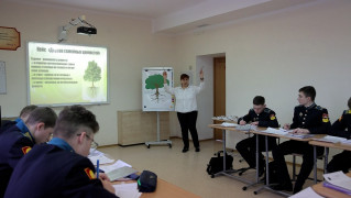 На занятии использовались информационно-коммуникационные, а также аудиовизуальные технологии. ИКТ были представлены презентацией, которая наглядно иллюстрировала содержание урока. Интеграция двух предметов гуманитарного цикла заключалась в том, что кадеты выполняли задания раздела «Обществознание» на английском языке, демонстрируя языковые и личностный компетенции.
