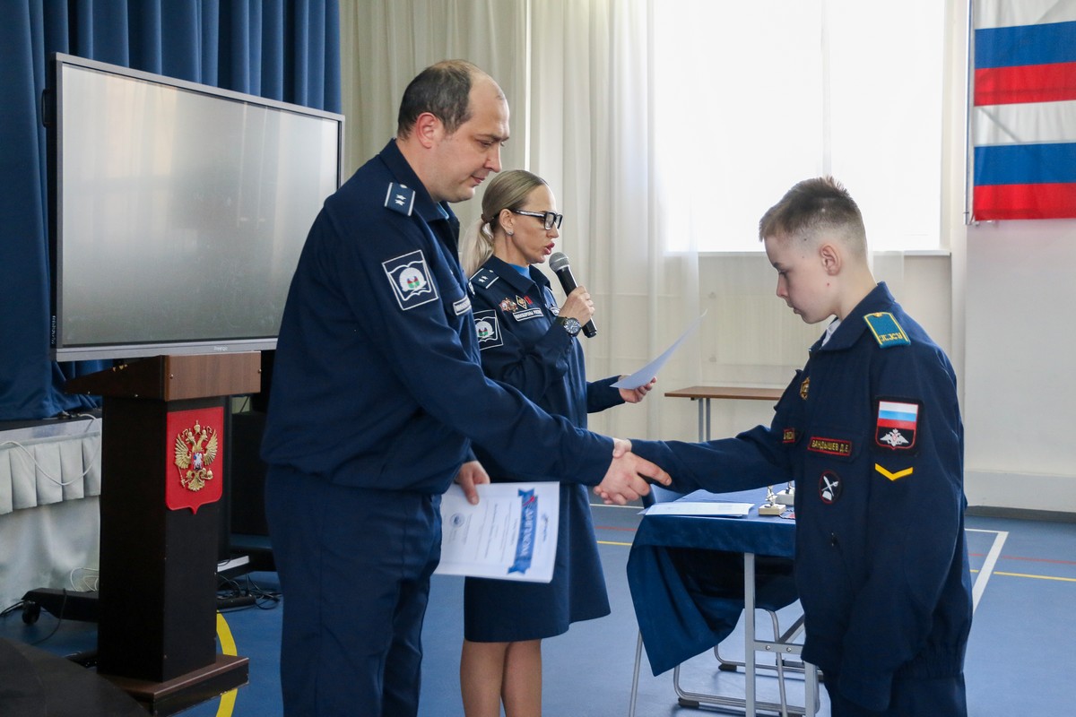 В завершение мероприятия Дмитрий Сергеевич Гутенёв призвал кадет поддерживать порядок и высокую дисциплину в учёбе и поведении. Оксана Сергеевна Романова пожелала всем сил, энергии и позитивного настроя на четвёртую четверть.