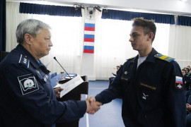Педагог-организатор Оксана Сергеевна Романова отметила лучшие классы в традиционных номинациях курса и объявила результаты по итогам переходящих вымпелов и статуэток: