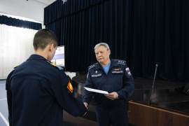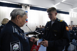Старший воспитатель курса вручил сертификаты за участие в конкурсе иллюстраций и буктрейлеров «Моя любимая книга», посвящённого книгам-юбилярам 2023 года, среди обучающихся довузовских образовательных организаций Минобороны России. Затем вручил дипломы за участие кадет в межрегиональном молодёжном поэтическом фестивале-конкурсе имени поэта-фронтовика Вениамина Ащеулова «Журавли».