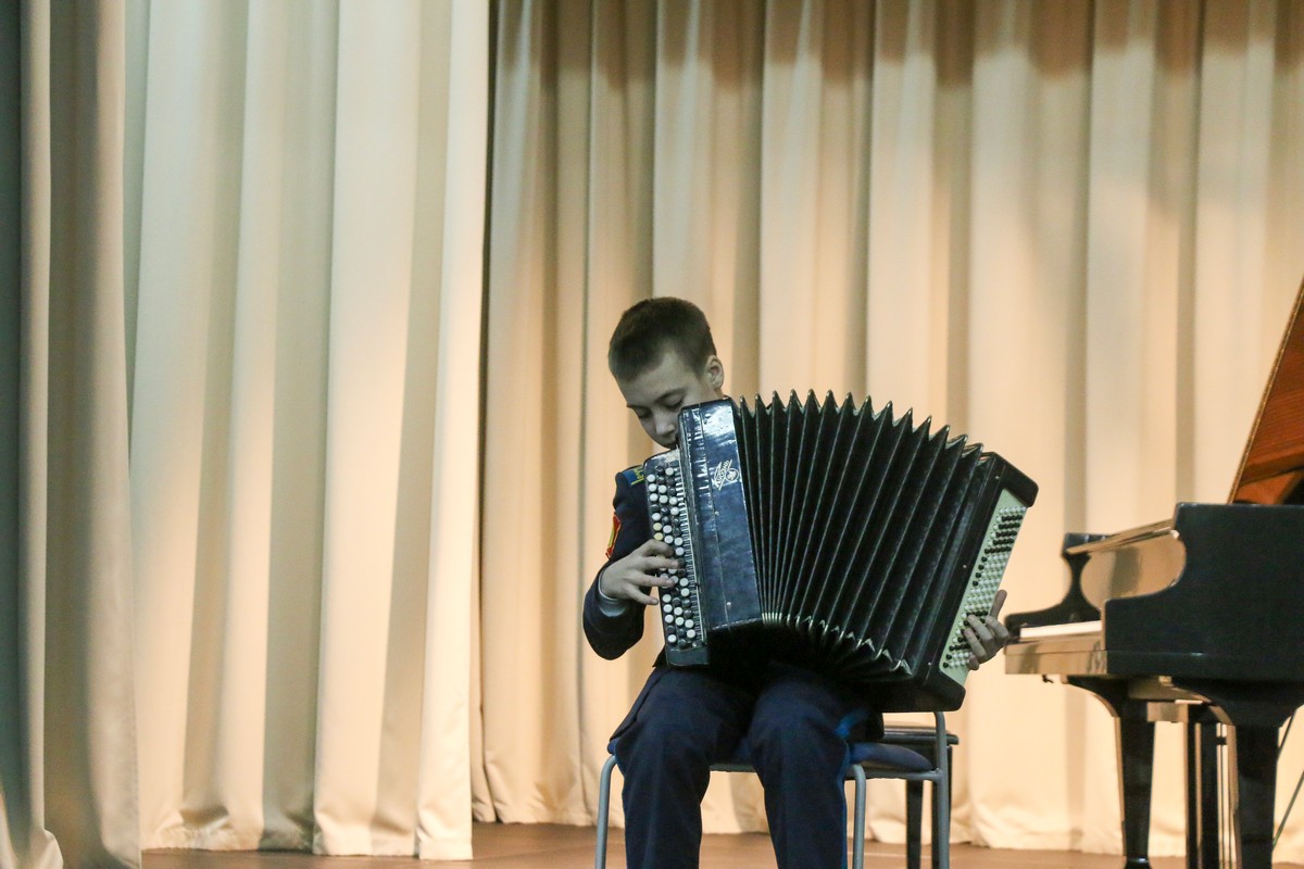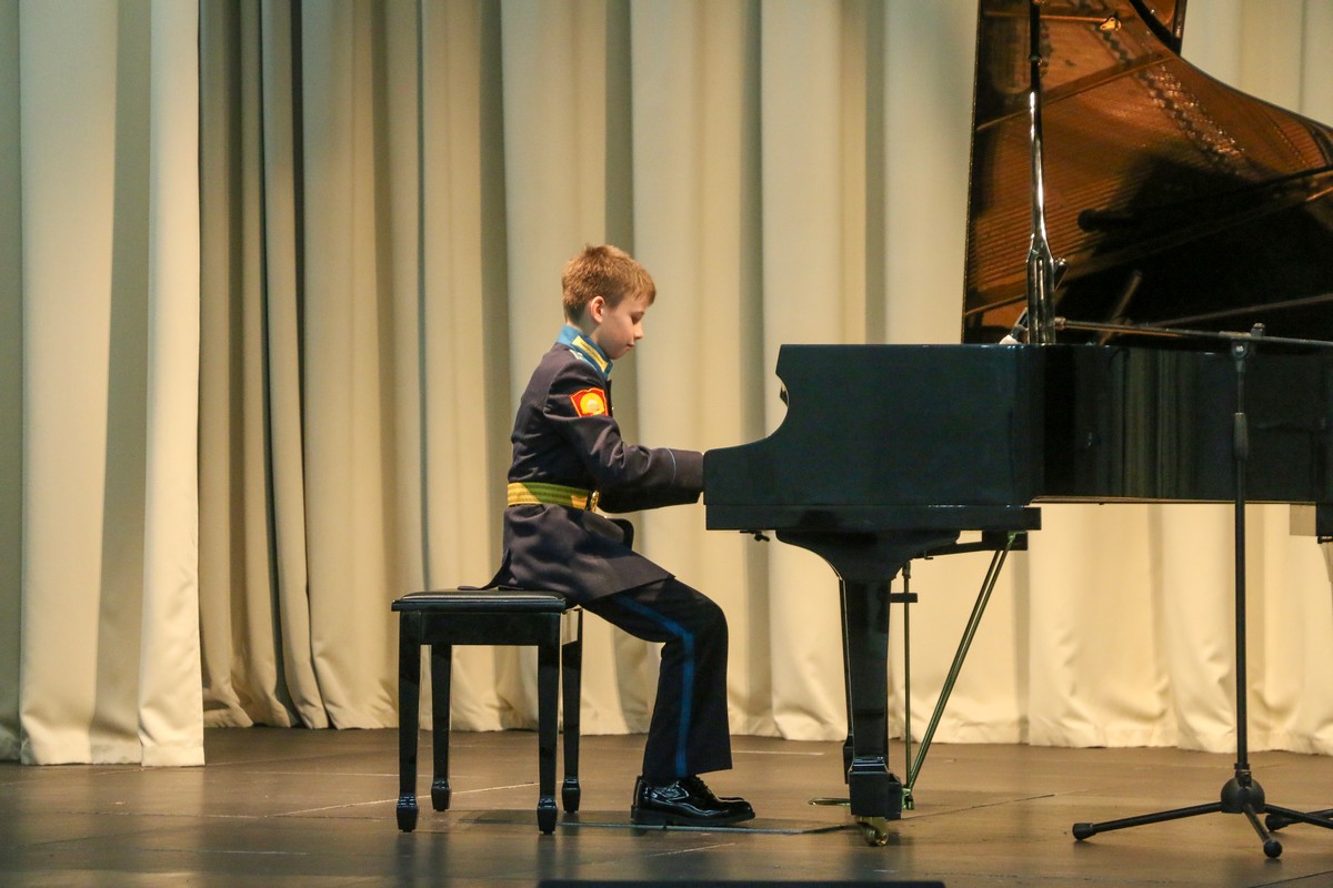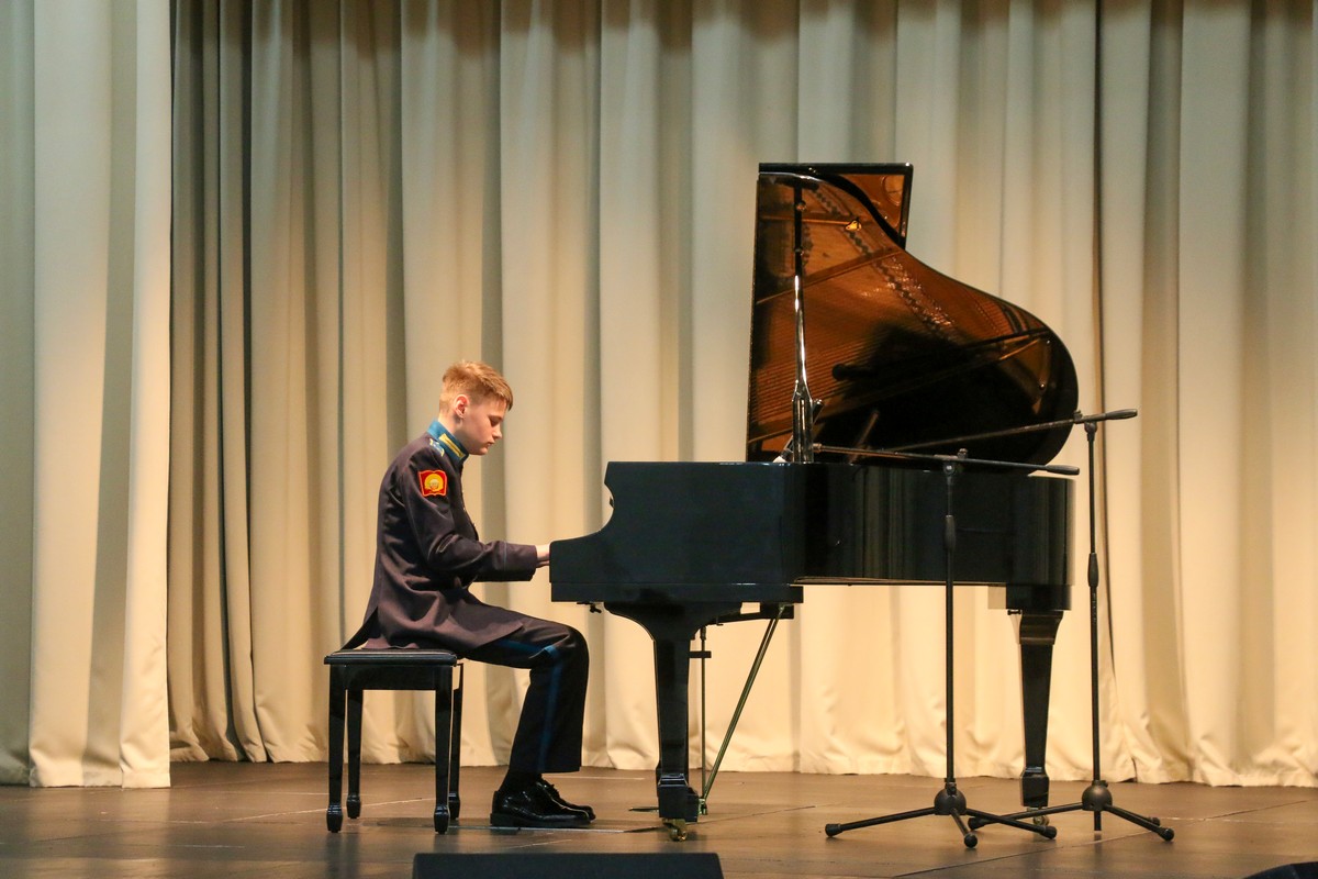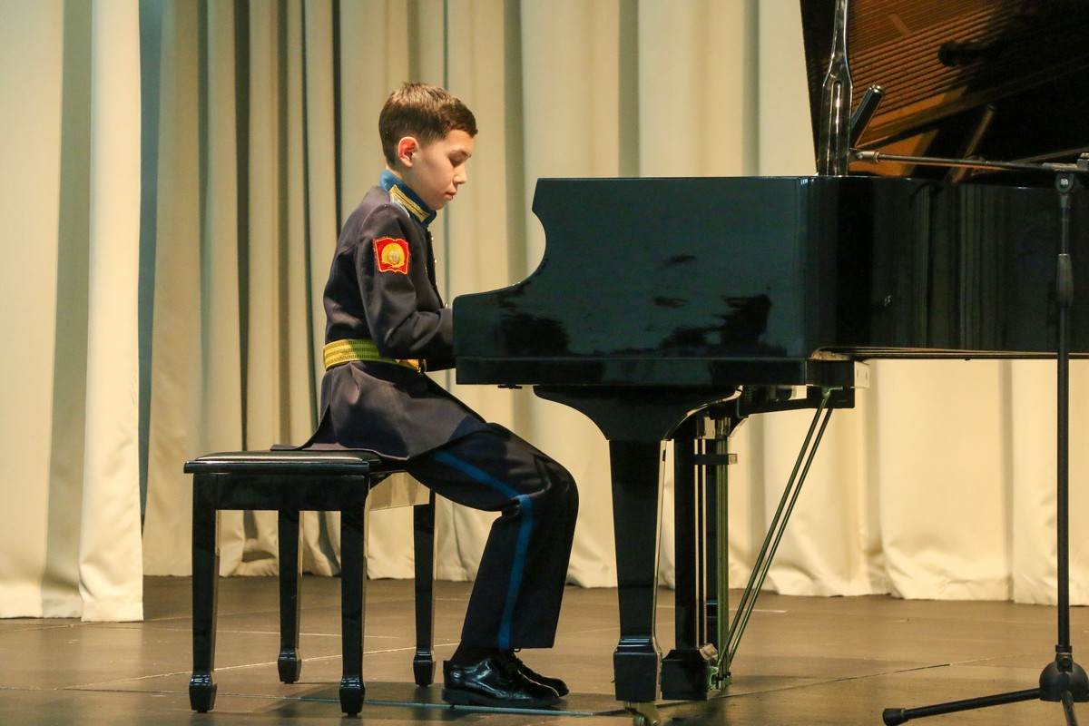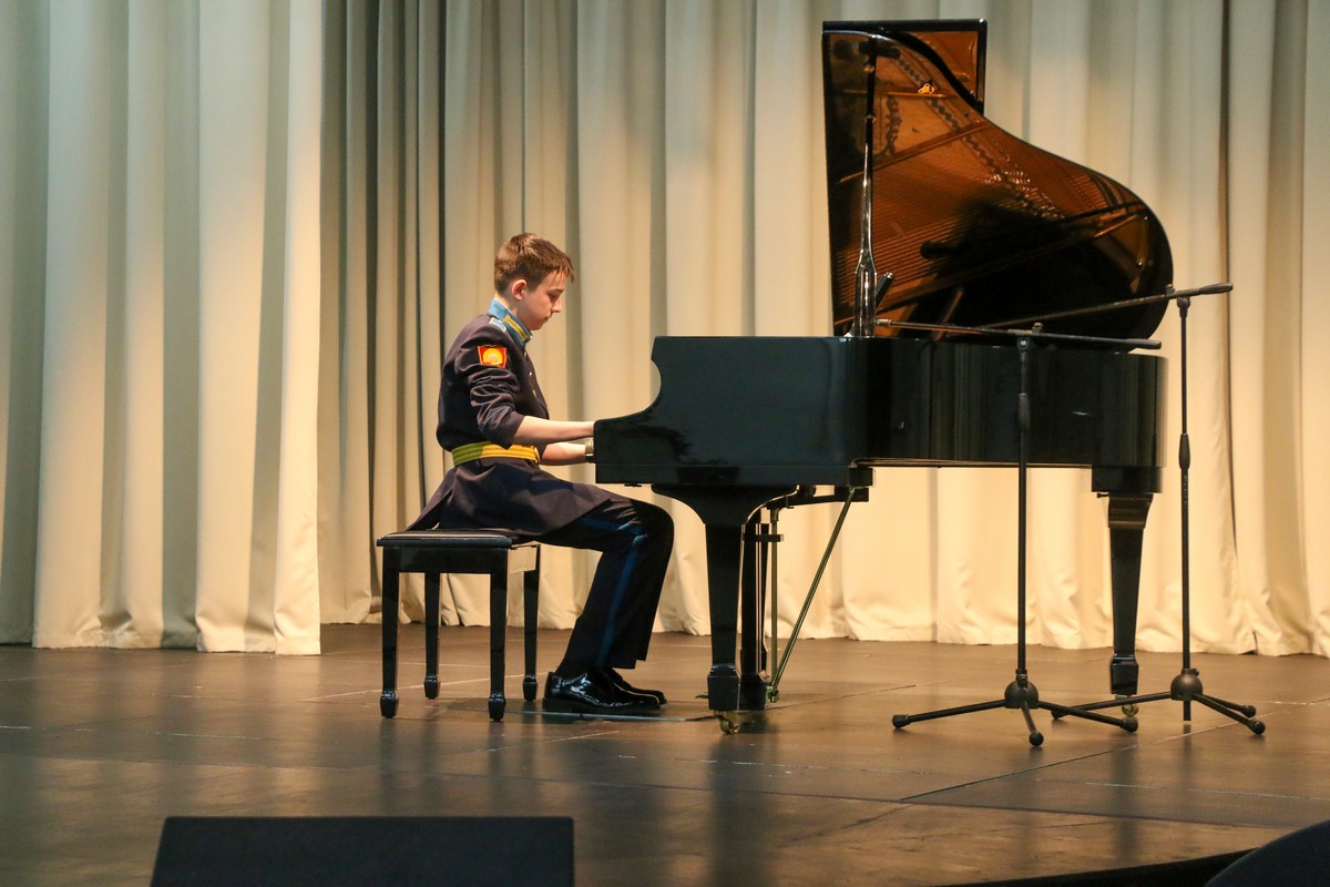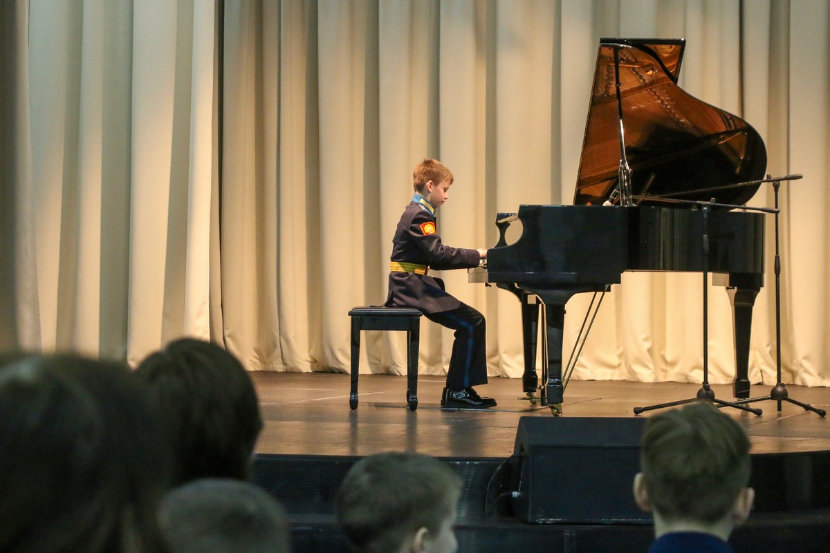 В Концертном зале Ставропольского президентского кадетского училища состоялся конкурс «Лучшие исполнители» среди воспитанников, посещающих программу дополнительного образования «Фортепиано». В состязании приняли участие кадеты, которые недавно стали обучаться игре на фортепиано и те, которые уже не первый год занимаются музыкой. Причём среди них были баянист и саксофонист, которые также исполнили конкурсные произведения.