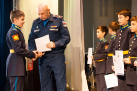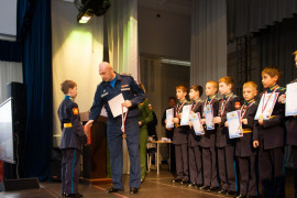 При подведении итогов на торжественном мероприятии в честь окончания триместра в первую очередь говорили о качестве знаний. Высокий уровень знаний по учебным предметам всегда в приоритете для воспитанников СПКУ. Первая четверть в первом учебном году в стенах училища для юных кадет самая трудная, однако, одиннадцать пятиклассников смогли окончить её на одни пятёрки.