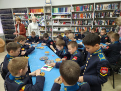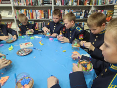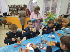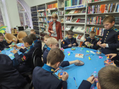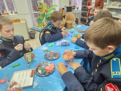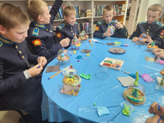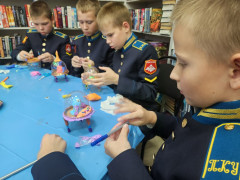 Выставка дала яркий старт для воплощения космических замыслов и фантазий кадет, блеснувших кроме отменной выправки, дисциплинированности и недетского чувства воинского достоинства, обычными мальчишескими увлечениями: азартом, вдохновением игры и творческого соревнования. Для кадет провела мастер-класс «Летающая тарелка» старший библиотекарь Ирина Викторовна Пахомова, участники которого не только смогли создать летательный аппарат собственной конструкции, но и поселить в нём космонавта, жителя неизвестной планеты.