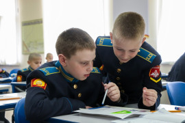 Пятиклассники узнали: как сравнивать углы, что измеряются они в градусах, познакомились и научились пользоваться новым измерительным прибором – транспортиром. Преподаватель Иванов, используя передовые педагогические технологии и методологические подходы, способствовал углубленному пониманию учащимися теоретических аспектов и практического применения изучаемой темы. Даже физразминка во время занятия была посвящена теме углов. Кадеты пытались руками изобразить тупой, прямой и острый углы, совершая повороты на 90 и 180 градусов.
