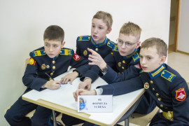 Игра состояла из пяти раундов: «Великие изобретатели», «Великие изобретения», «Военные технологии в мирной жизни», «Из глубины веков» и «Всё гениальное просто». Участники команд вместе с ведущим, преподавателем математики Уваровой Ю.В., погрузились в интереснейший водоворот конкурсных соревнований. На протяжении всей игры кадеты демонстрировали быстроту своих мыслей, находчивость, смекалку, сообразительность. Победителем интеллектуально-познавательной игры «Изобретатели и изобретения» стала команда 6 «Б» класса «Формула успеха».