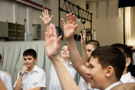 Яркую эмоциональную точку всего новогоднего мероприятия поставил танцевальный баттл, где кадеты, эльфы и воспитатели сразились за звание Короля-дискоденсера.