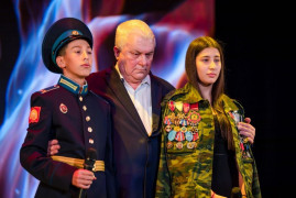 А также кадет 7 "Д" класса Иван Попов, который вместе со своей сестрой Ксенией Поповой участвовали в номинации "Вокал" с песней "Встанем".